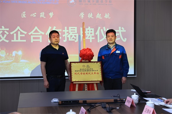 匠心筑夢 學(xué)徒起航-煙臺環(huán)球與煙臺城鄉(xiāng)建設(shè)學(xué)校舉行校企合作揭牌儀式