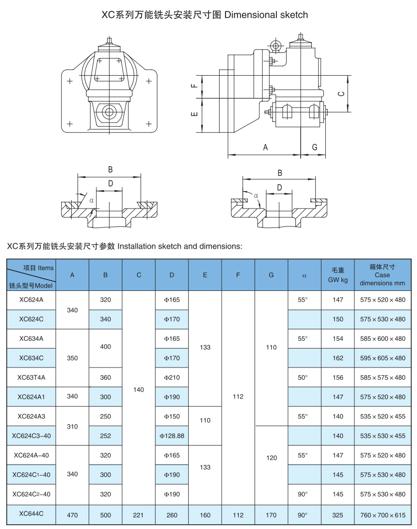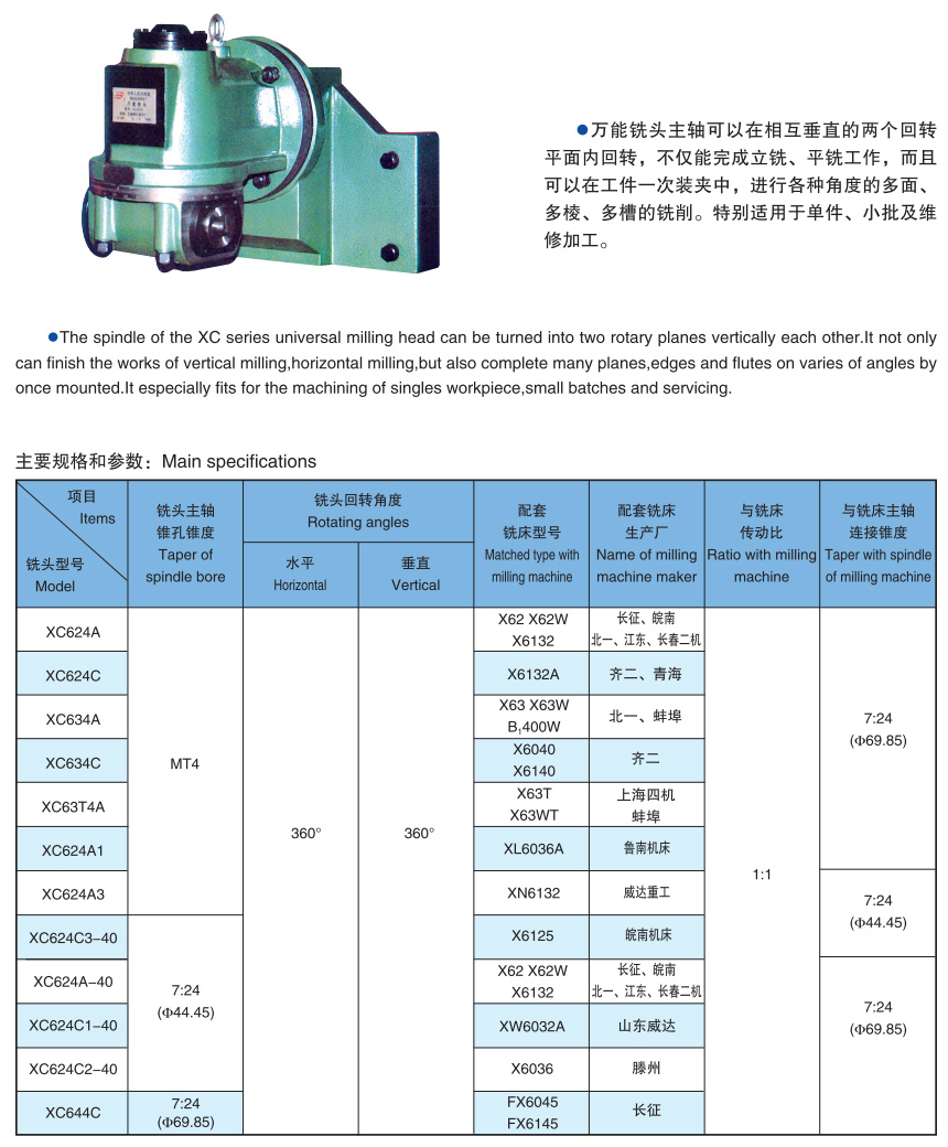 XC series unicersal milling head