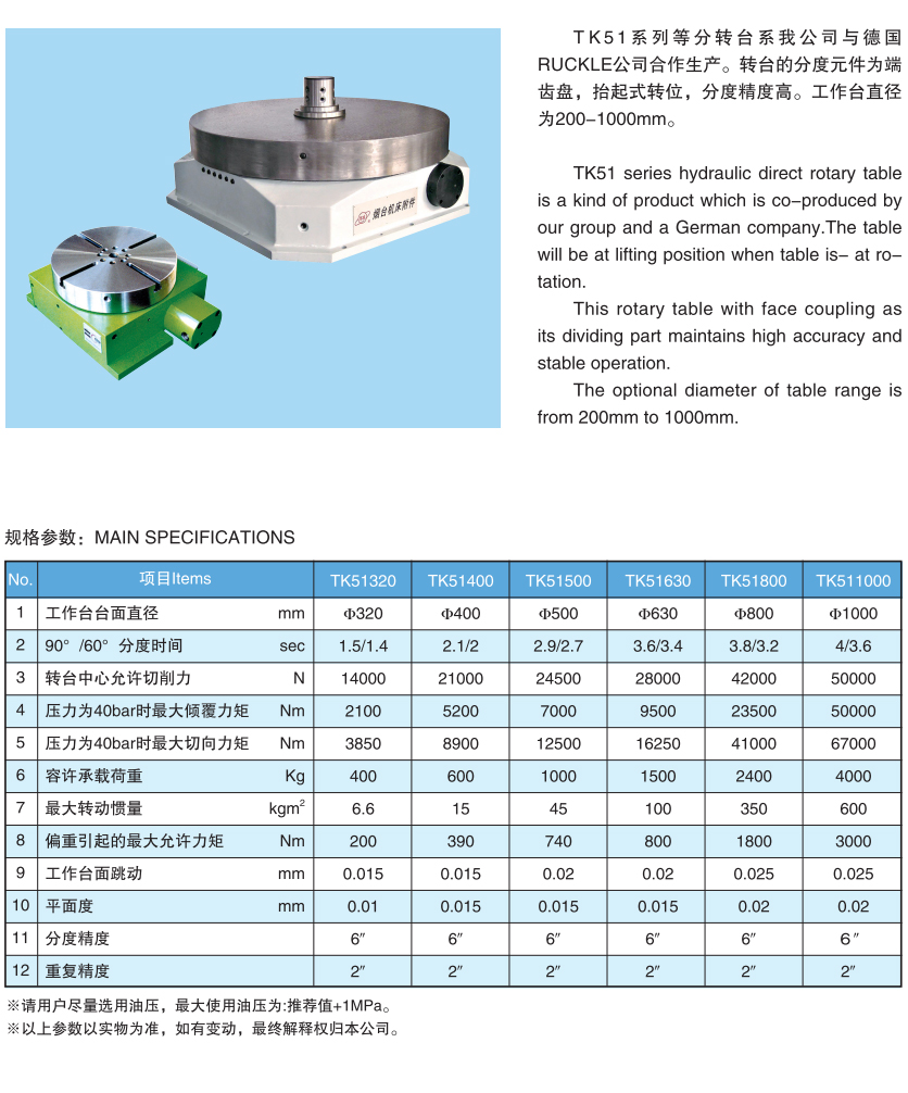 TK51 series hydraulic direct rotary table